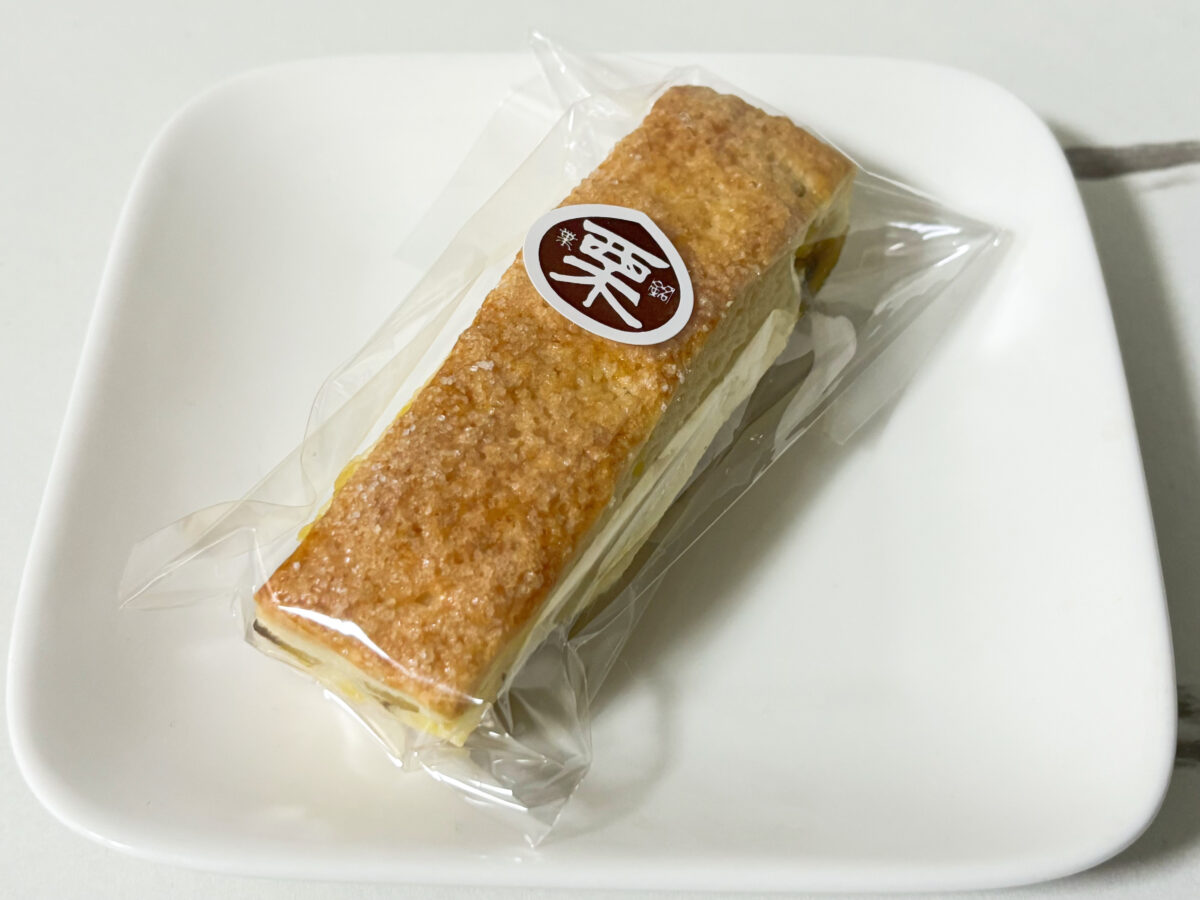 和栗をたっぷりと使ったクリームとあんこ、クレームオブールが挟まれたどら焼き。全てがバランスよく調和の取れた味。栗のコクもしっかりと感じます。