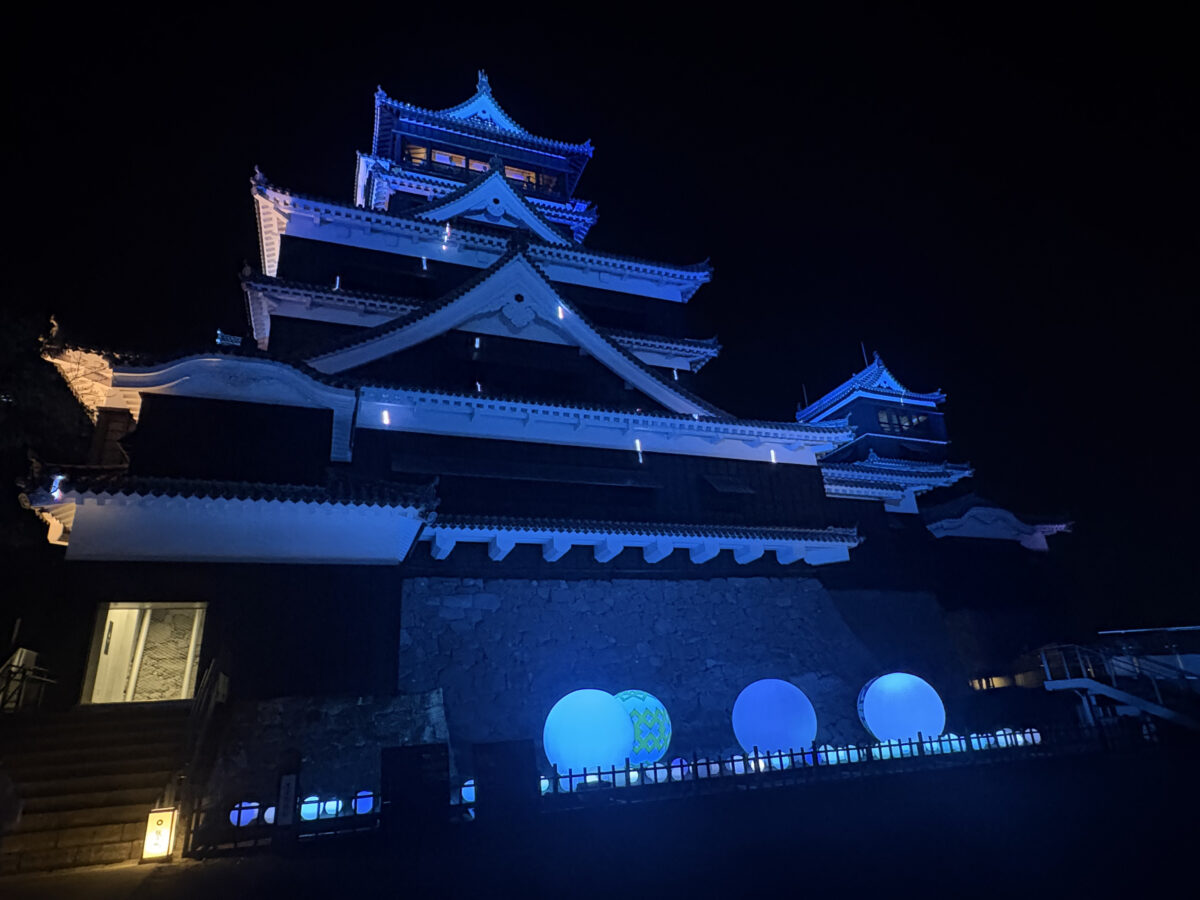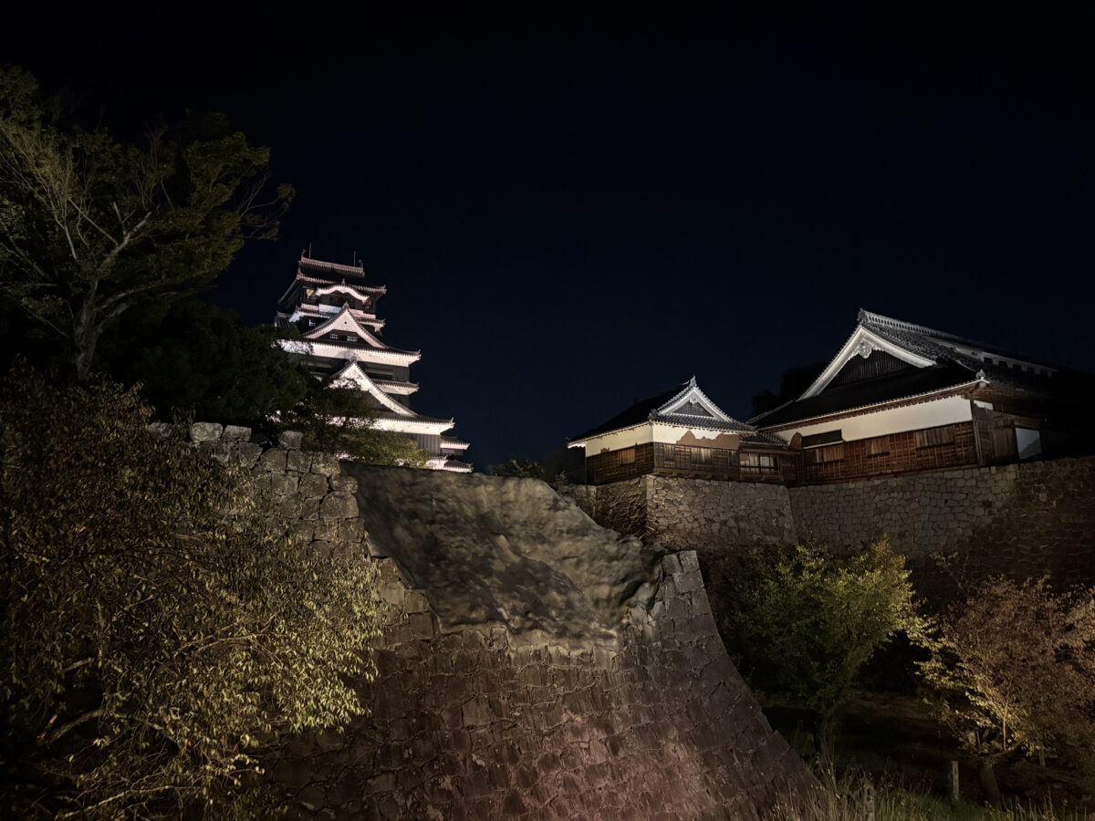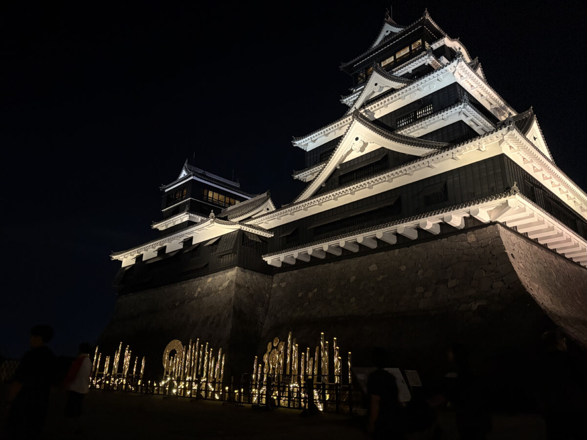 熊本城はライトアップされて、温かな灯が敷地内いっぱいに広がります。