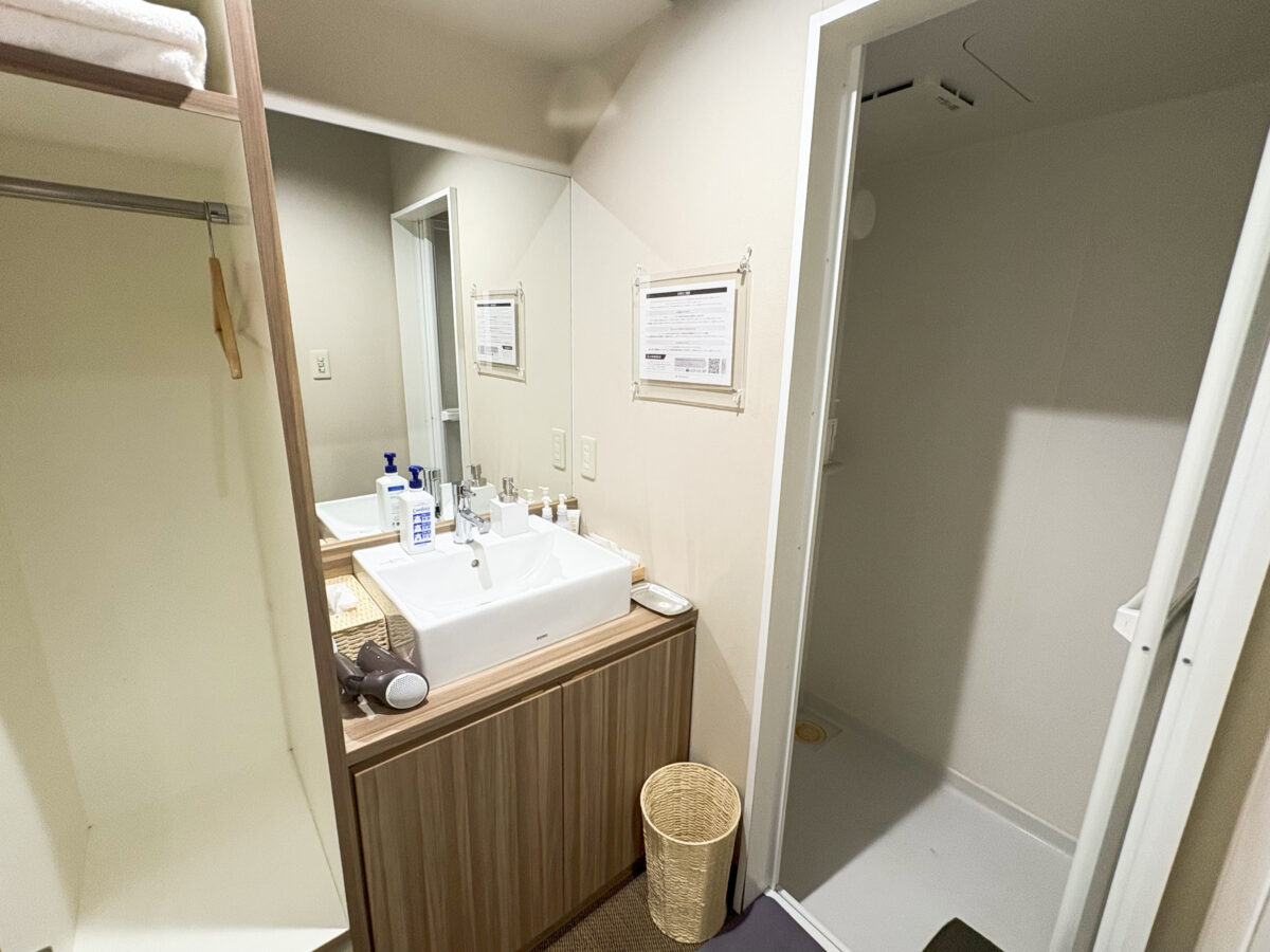 さらには個室のパウダールームもあり。シャワールームやドライヤー、アメニティも揃っています。