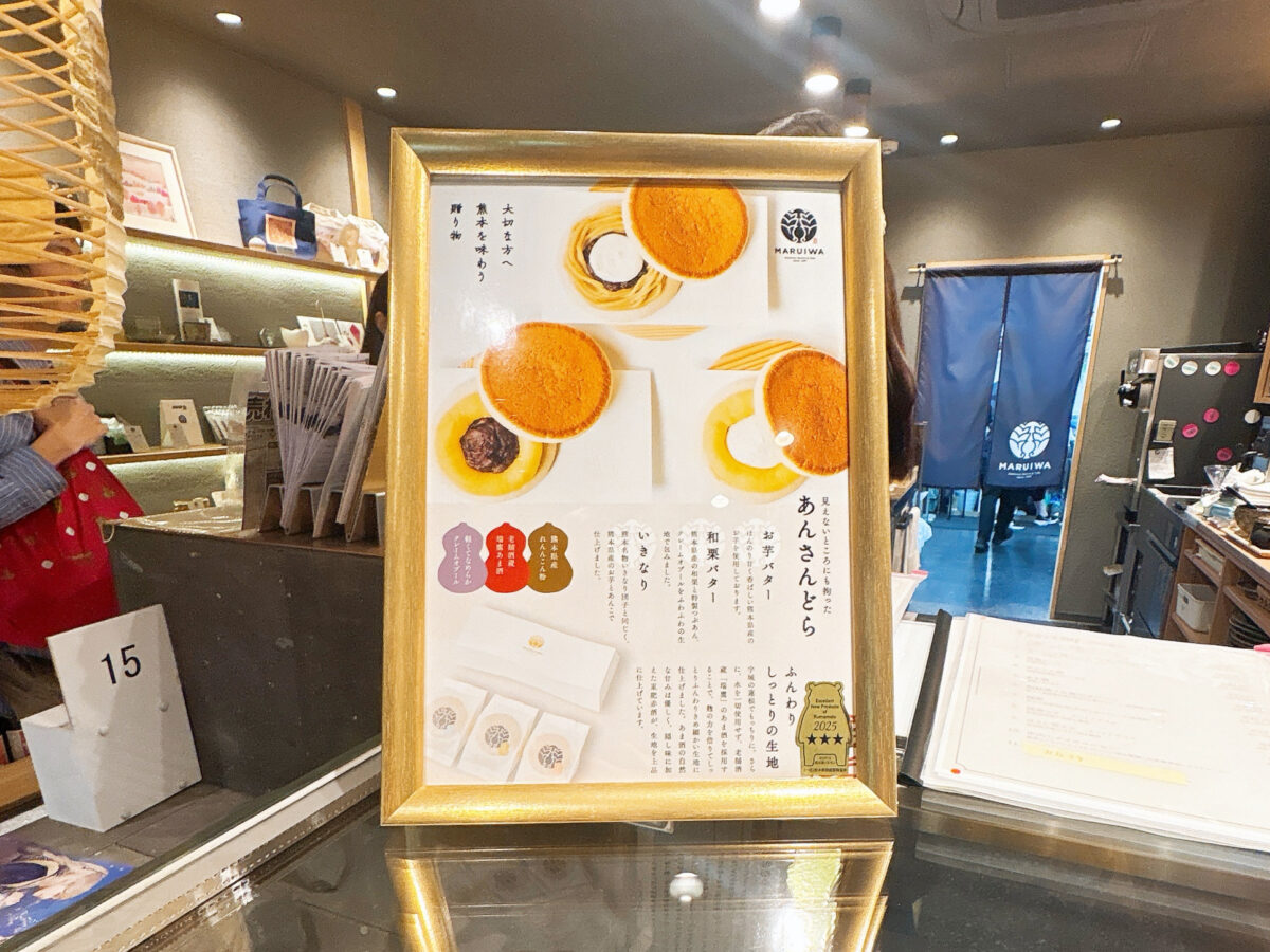 看板メニューのあんさんどらにお芋とバターを挟んだものをご紹介。
