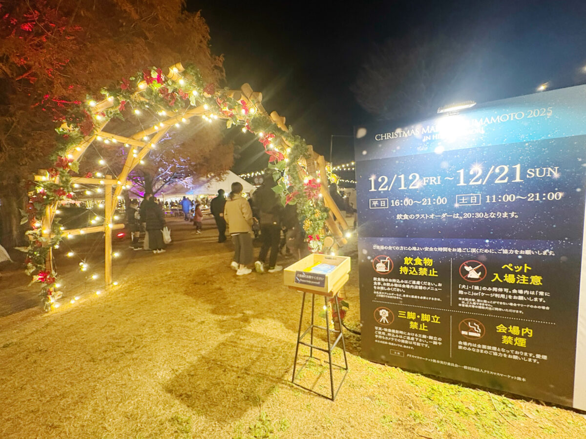 JR熊本駅と花畑広場でクリスマスマーケットがスタートし、各会場で賑わいを見せています。