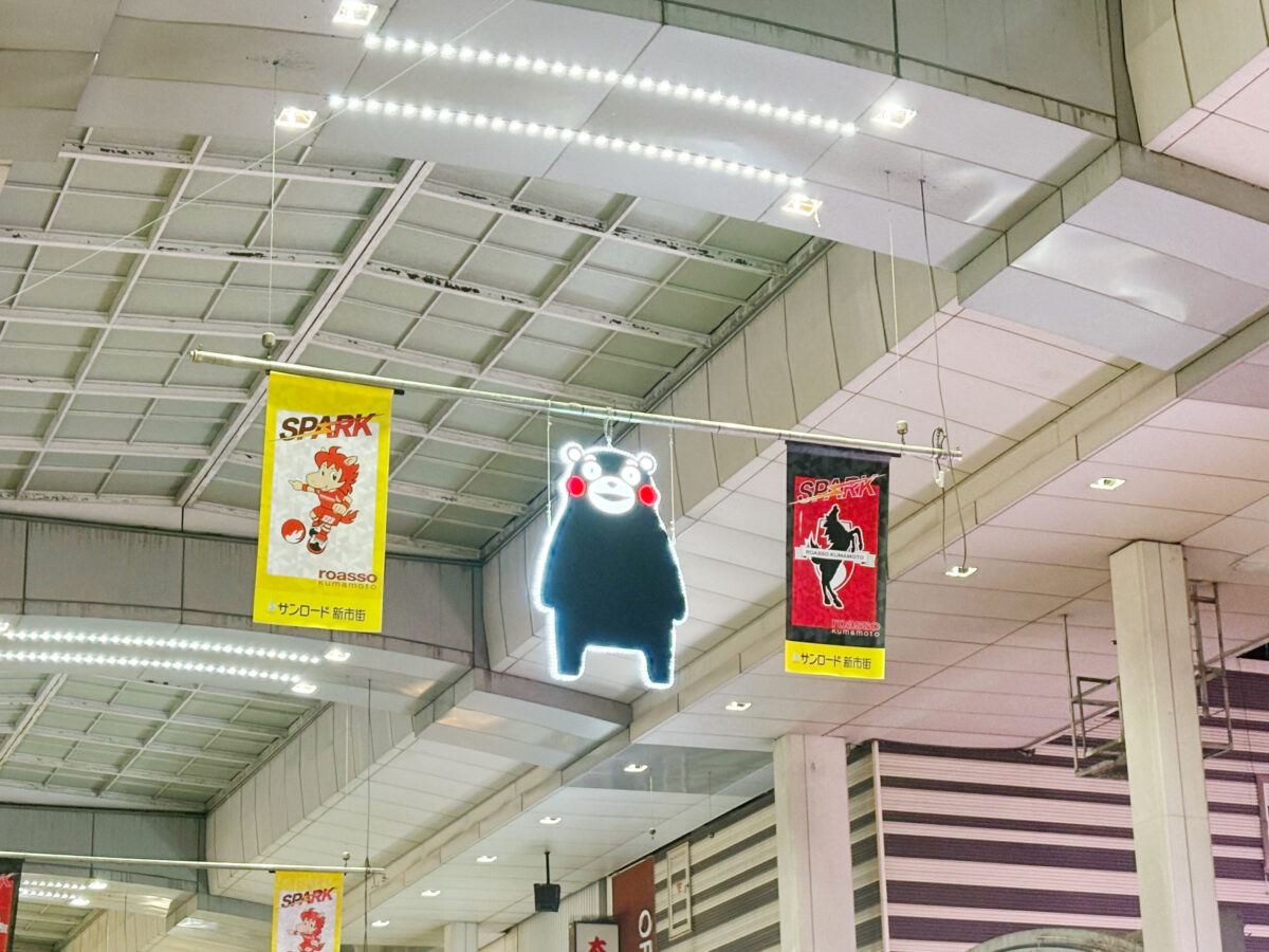新市街アーケードにあるくまモンがキラキラとしていて寒い冬をちょっと温かく照らしているよう。