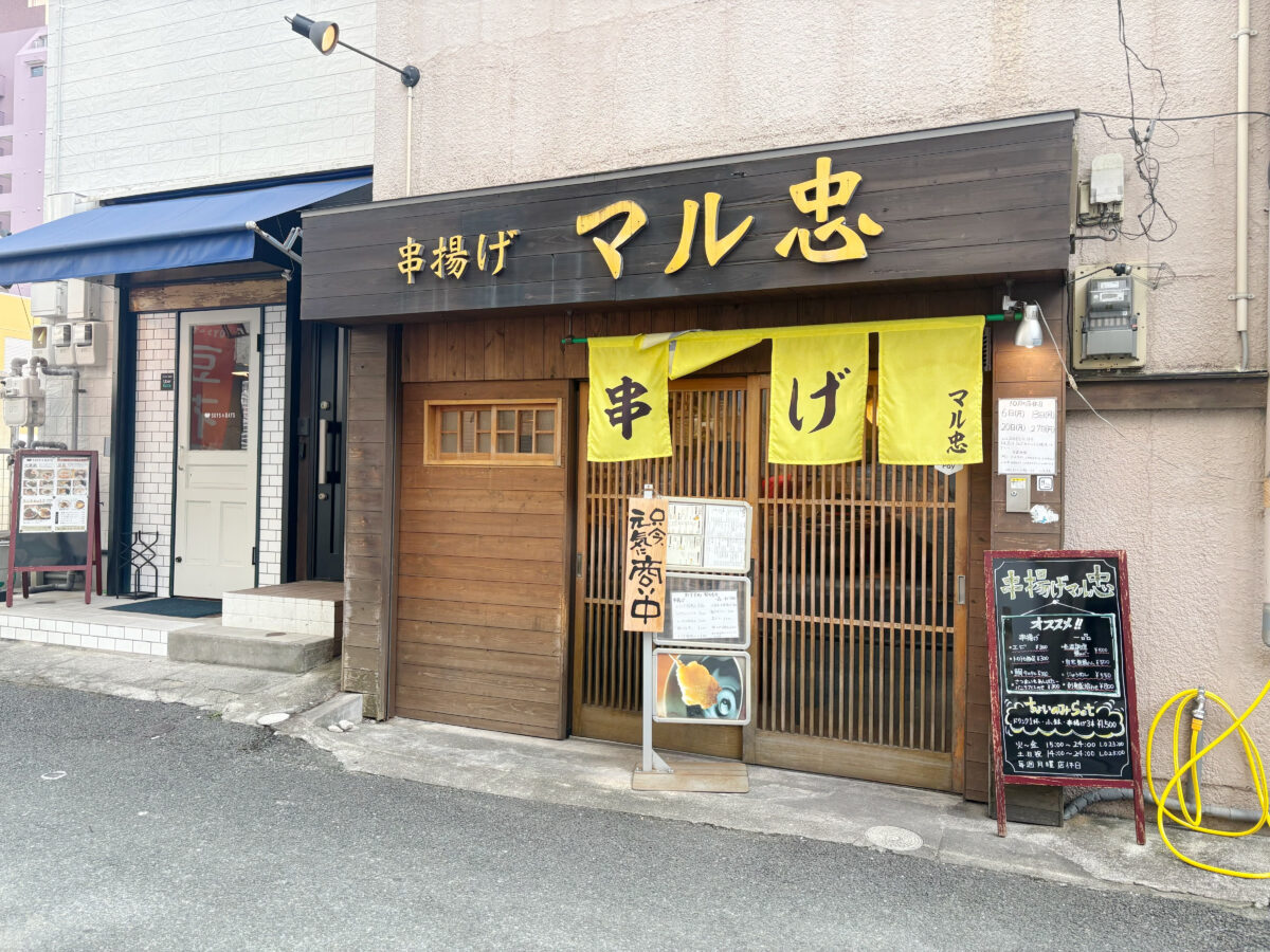 1店舗目は、上乃裏通りにある串揚げ マル忠。串揚げ専門店です。