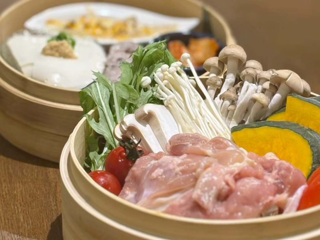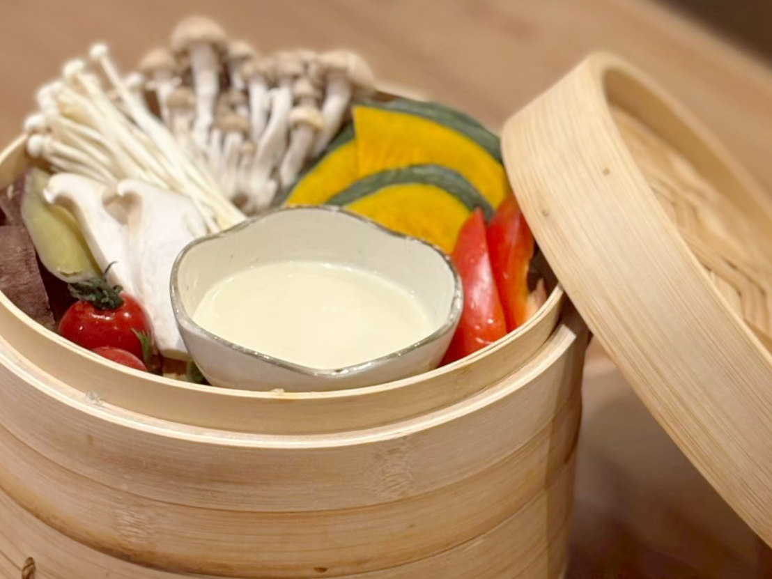 こちらでいただけるのは、セイロ蒸し。食材本来の旨味と栄養素を最大限に楽しめます。